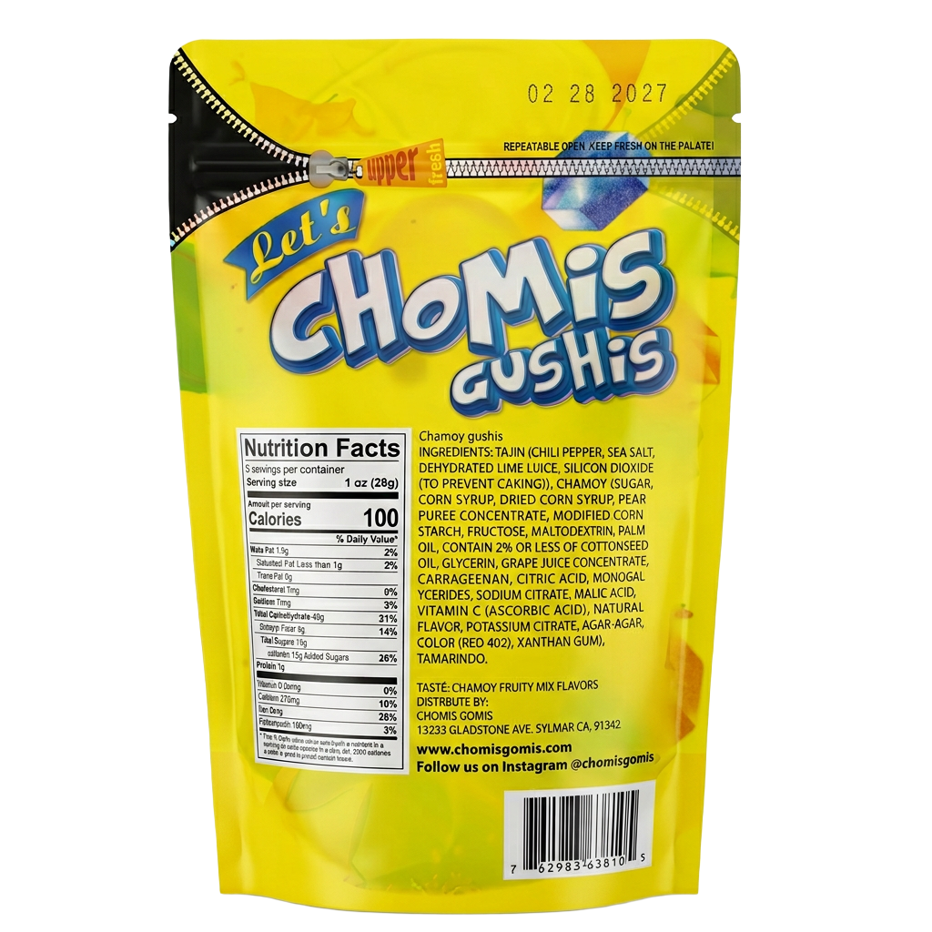 Chomis Gomis chamoy gummies use a special blend of spices, chilies and homemade chamoy that guarantees your taste buds will be going crazy. The delightful experience offers distinct and delicious notes of sweet AND sour flavors that will make your mouth water. Relive you favorite childhood snack with a tangy twist. Each gushers gummy is packed with different flavors and sensations that will satisfy your cravings for tangy and sweet. First you get hit with a tasty sour flavor, followed by a powerful burst of chili spice that is calmed by the sweetness of sugary syrup within. Each pack comes in a resealable bag perfect for work, home, or travel. Our gummies are handmade in the USA in small batches to ensure we achieve the same great taste and quality. Over the years, we have carefully perfected our special chamoy mix that gives our gummies their rich salty, sweet, sour, and spiced chili flavors. The fusion of sweet fruity gummy flavors and our spicy blend chamoy flavor complement each other perfectly. Grab a bag and enjoy the flavor adventure!
